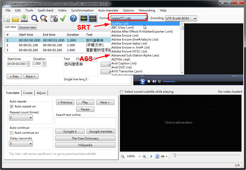 三種把 vtt格式字幕檔,轉成 srt字幕檔的方法