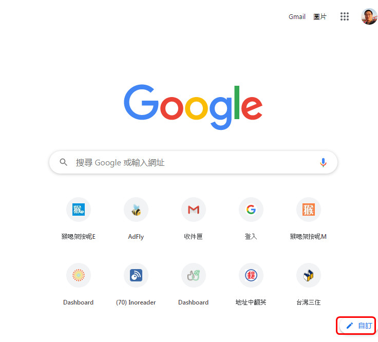 首先,我們打開 chrome之後,點擊右下角的『自訂』。