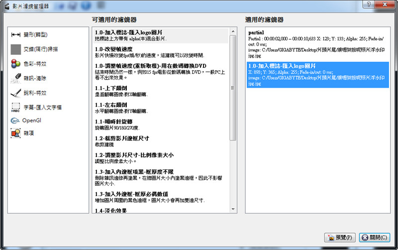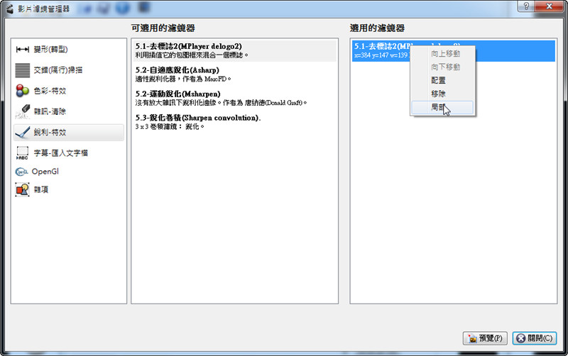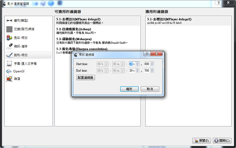 Avidemux免費影片剪輯軟體,一些常用的濾鏡介紹