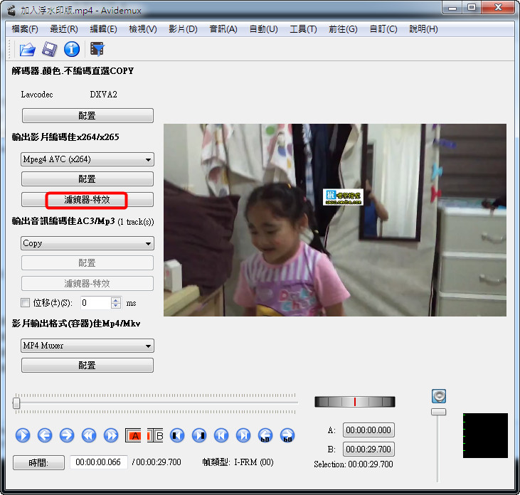 用到的同樣是 Avidemux的濾鏡的功能,Avidemux加入浮水印的功能,