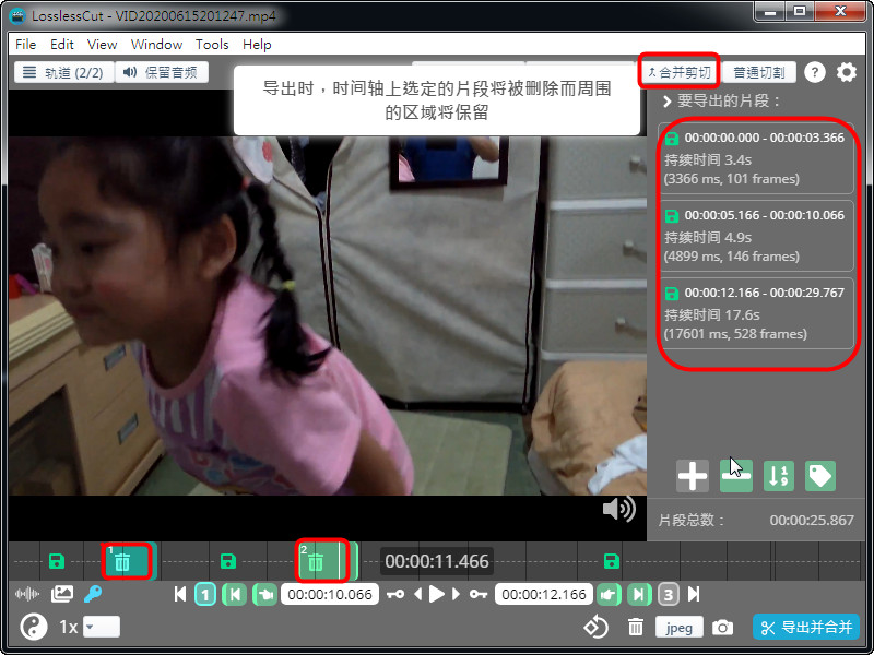 用LosslessCut免費影片切割軟體,刪除影片中不要的片段