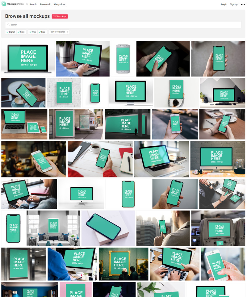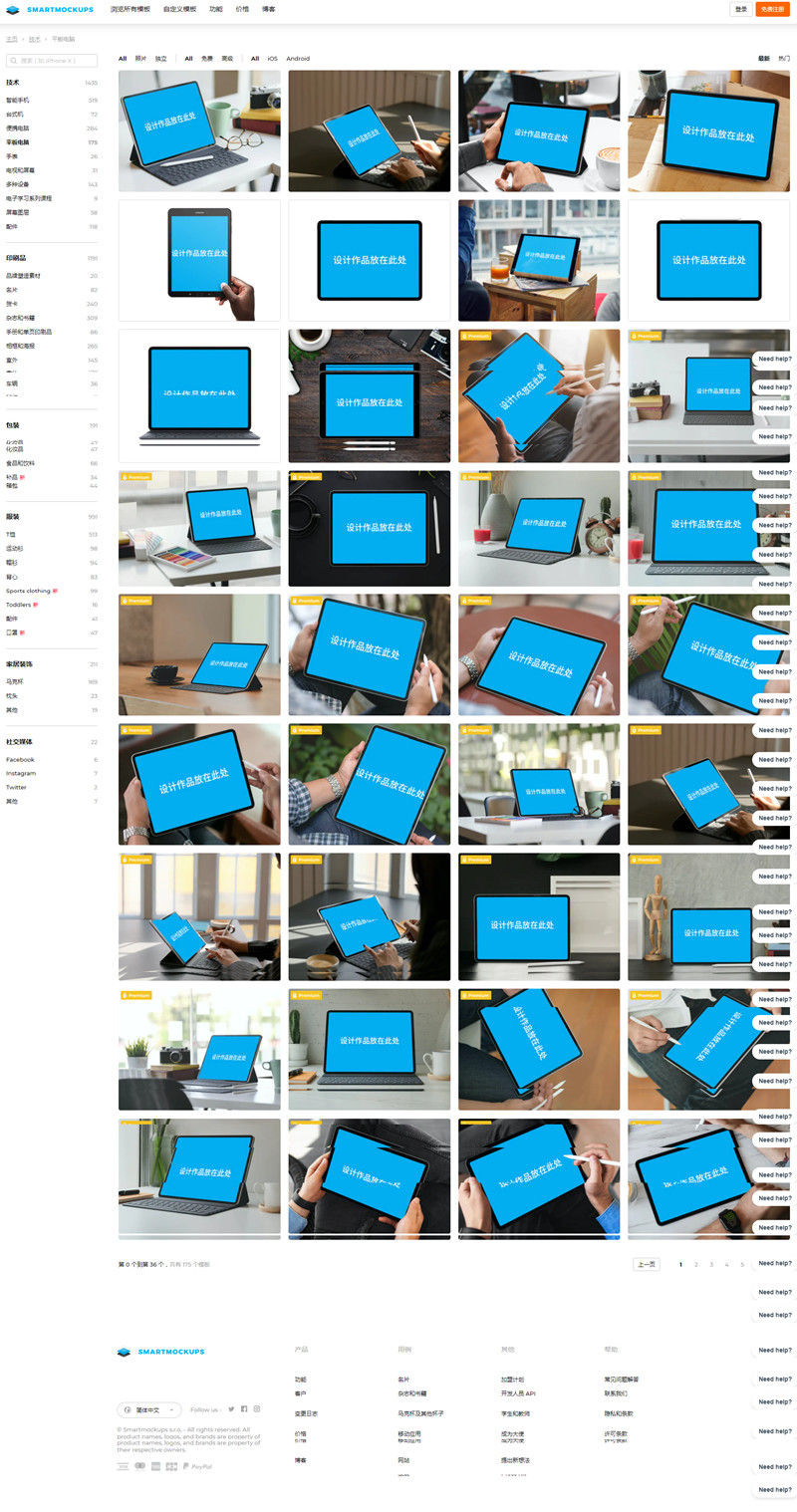 它的類型就跟前面介紹過的 smartmockups.com類似,除手機、電腦等 3C產品的圖框外,也一樣是包山包海,一樣是非常推薦給大家試試看。我比較常用 smartmockups.com,我覺得它的介面清爽一點。