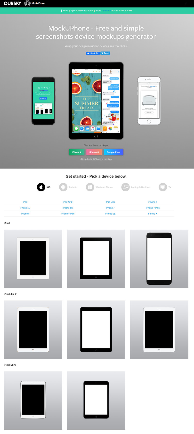 它很單純,就是可以把圖片套用手機框、筆電框、電腦框。也會提示建議的尺寸。