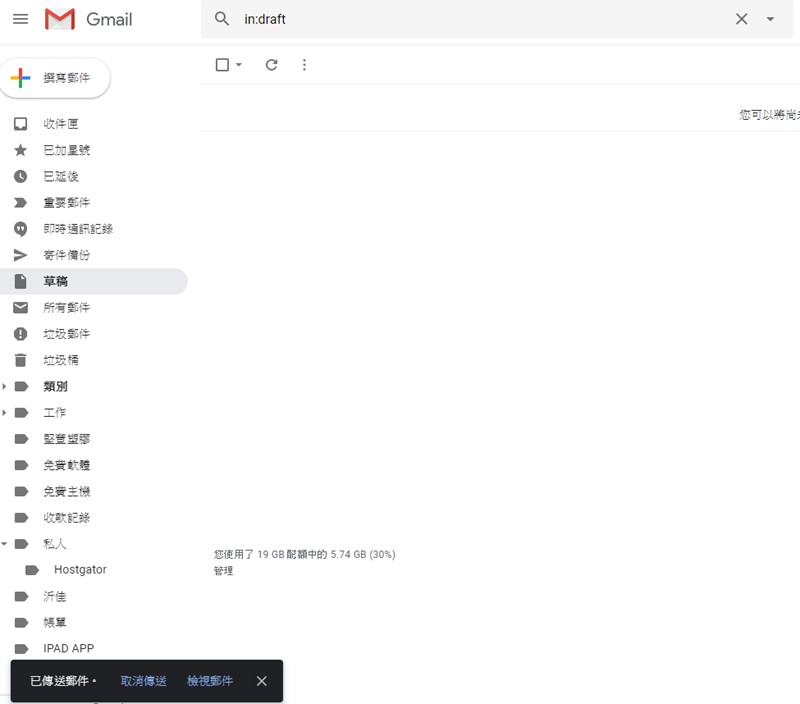 現在Gmail也有取消傳送的功能,可惜只有30s的後悔期!(有比沒有好啦)
