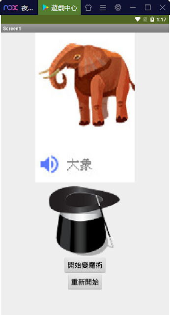 點擊開始變魔術之後,帽子會翻過來,大象會跑出來(我比較喜歡大象),點擊大象的話,會發出大象叫聲。