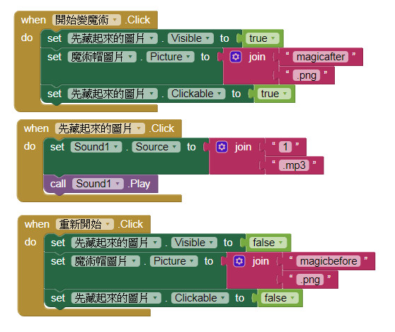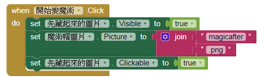 把『魔術帽圖片.Picture』的圖片更改成 “magicafter””.png”這兩個字串組合。