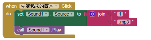 設定『Sound1.Source』聲音的來源是 1.mp3這個檔案。