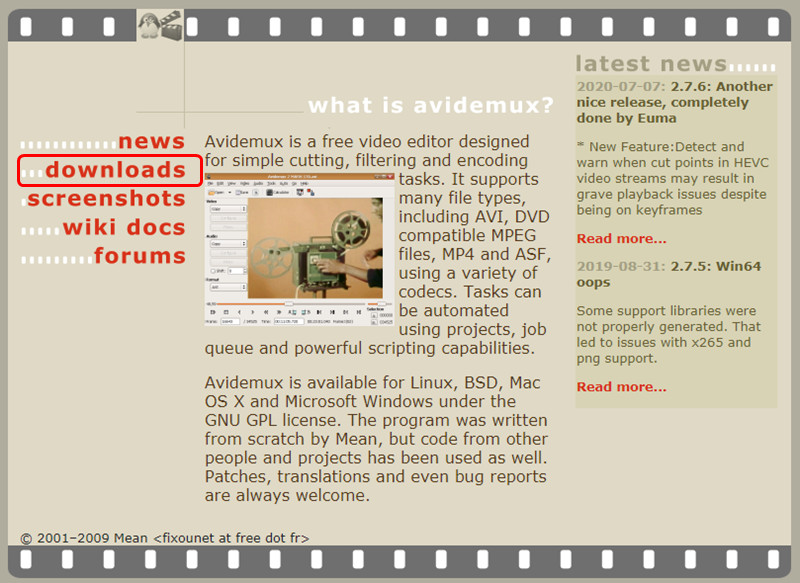 我們可以到 Avidemux的官網下載,Avidemux它目前是免費而且是中文。