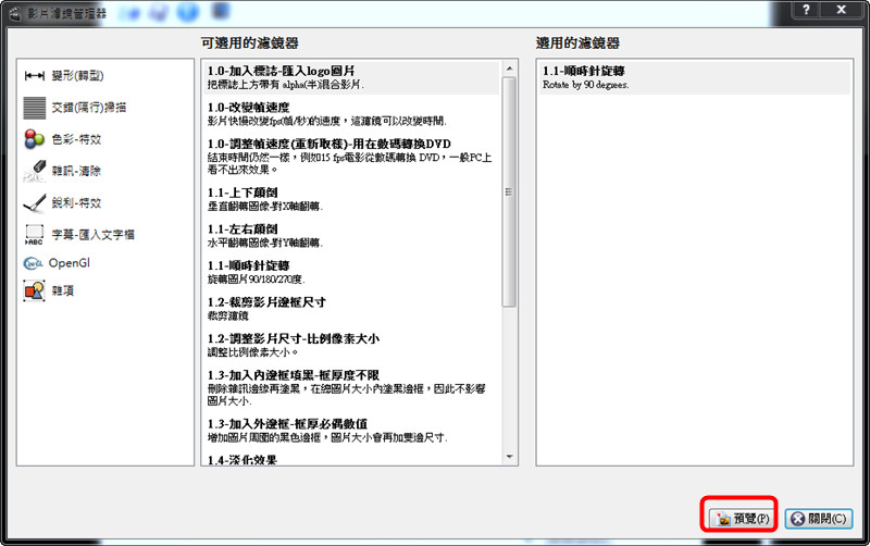 Avidemux免費影片剪輯軟體,一些常用的濾鏡介紹