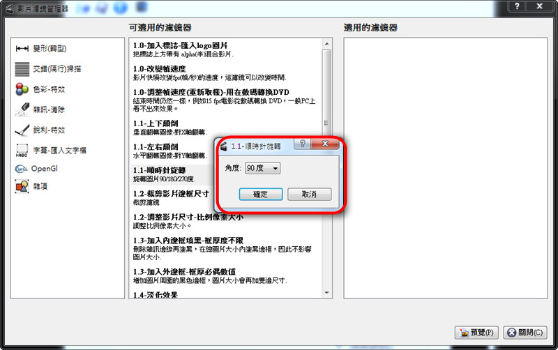 同樣的,我們還是要套用 Avidemux的濾鏡功能。