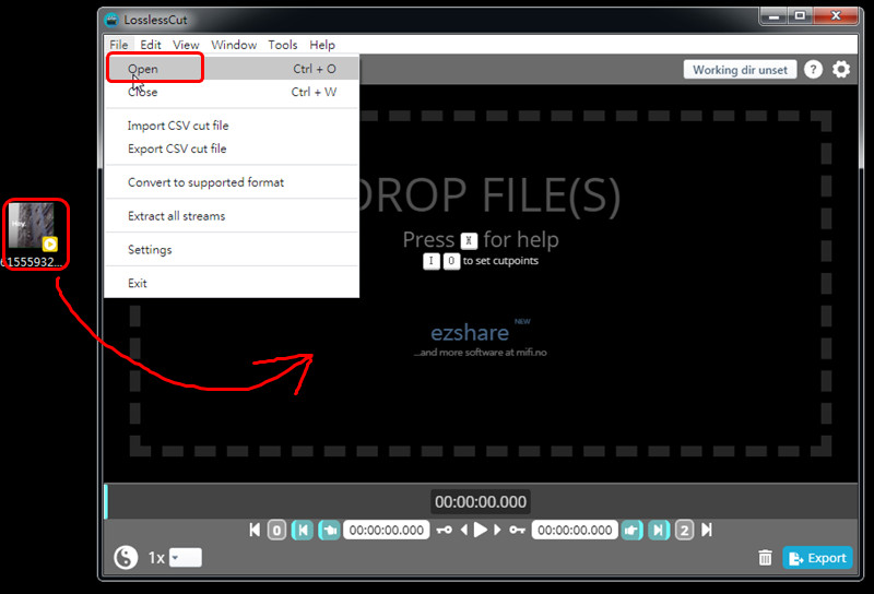 我們可以點 『Open』來載入要裁減的影片,也可以直接把影片拉到程式中。
