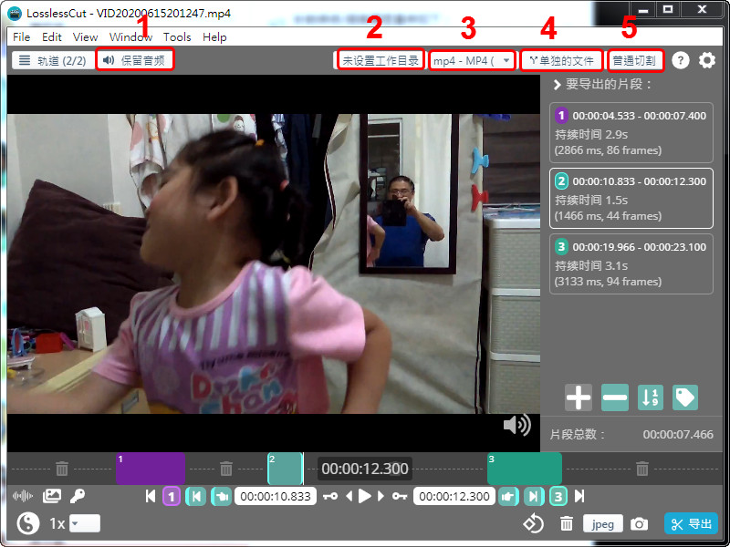 5:這個可以選擇關鍵幀剪切或是普通切割。官方是建議用關鍵幀剪切,我個人是比較喜歡用普通切割。
