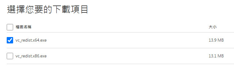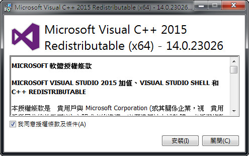 Windows官網 Visual Studio 2015 的 Visual C++ 可轉散發套件下載連結