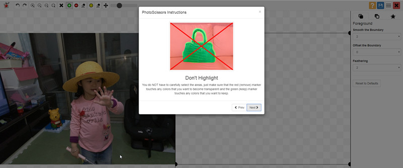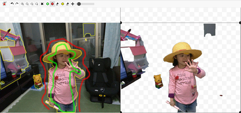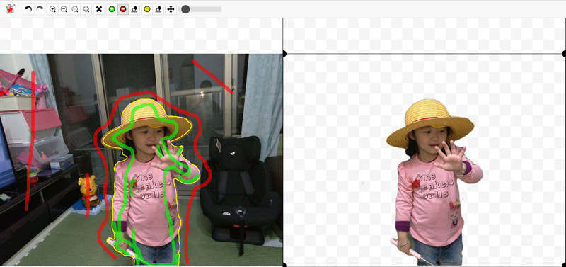 有用過的類似工具的朋友應該很熟了。沒用過的朋友也不用擔心,像這類型線上去背的服務,做法都差不多。都是用綠線畫出我們要保留的地方,用紅線畫出我們要刪除的地方,剩下的就讓系統自己去判斷。