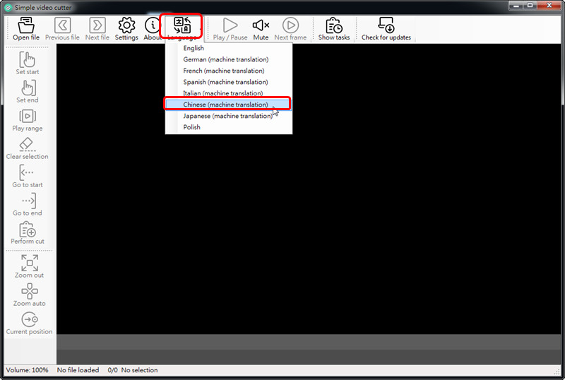 然後,SimpleVideoCutter有支援中文介面,所以我們來轉換一下語系。