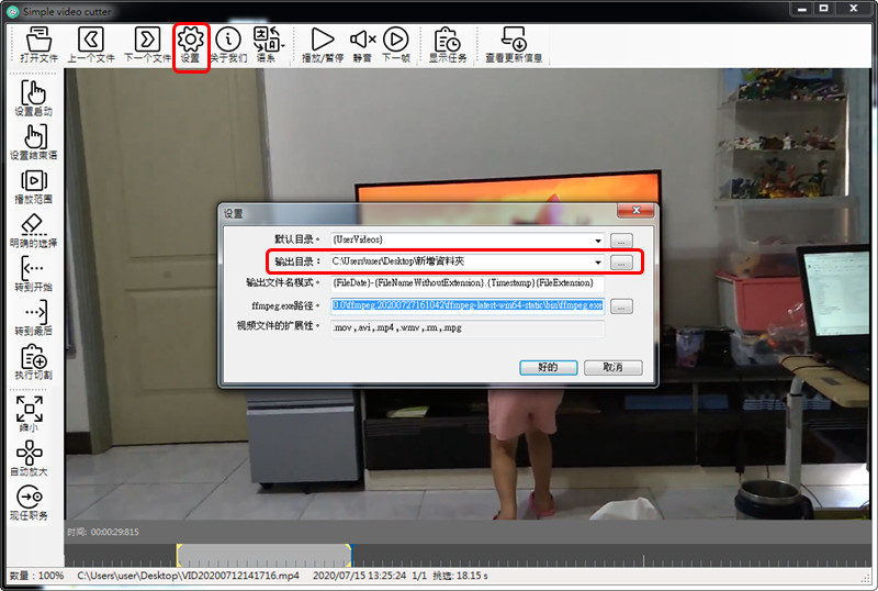 接著,我們點擊『設置』,調整一下輸出資料夾的位置。