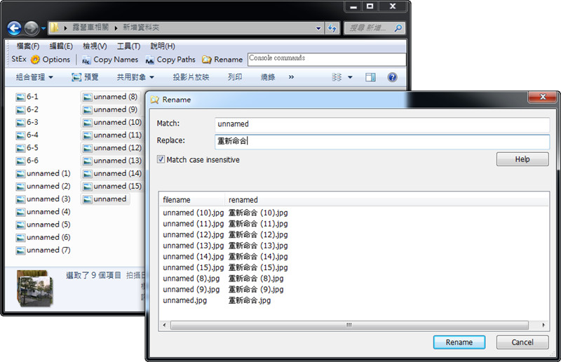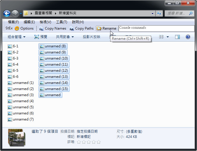 關於批次改檔名的部份,之前也有介紹過 2套改檔名的軟體,分別是『Krename』以及『Renamer』大家也可以參考一下。StExBar有包含這個功能在,雖然在改檔名這件事上,功能沒有那麼強大,但也挺夠用的。