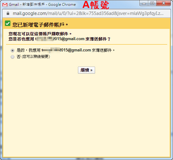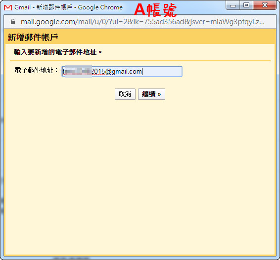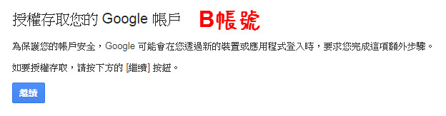 在這裡輸入 B信箱的電子郵件後,按下繼續。