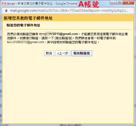 我們再回到 A帳號,看到步驟 5還沒有關閉掉的視窗。