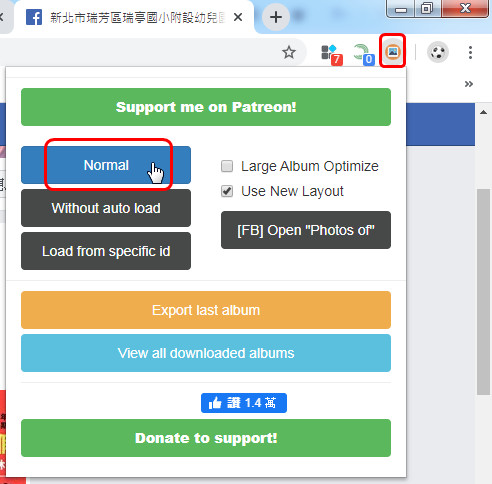 點一下 chrome工具列上 DownAlbum的圖示,點擊 Normal。