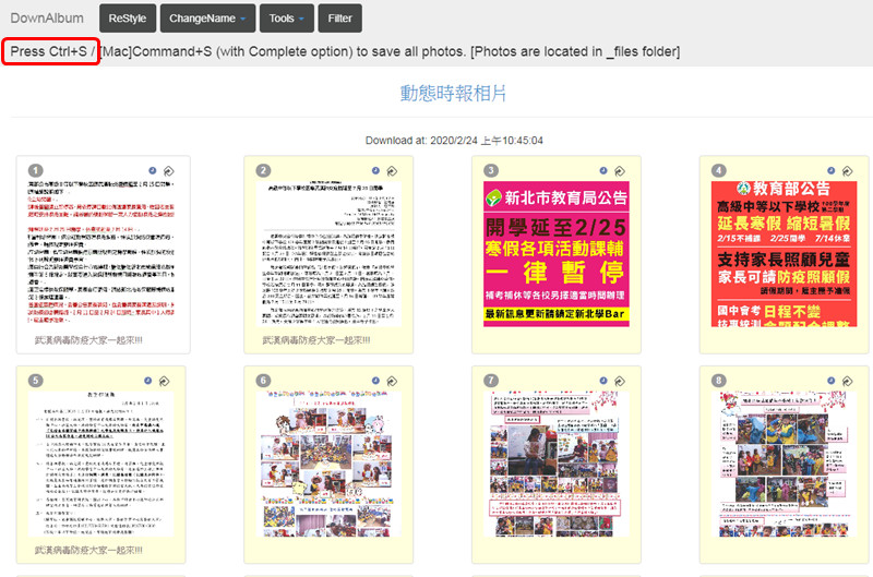 等 DownAlbum載入完成之後,會跳到這個頁面。看到這個頁面的時候,你可能會覺得有點疑惑,說好的相簿一次打包下載跑那去了。莫非要從這裡一張一張的下載。