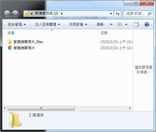 等系統把相片全部都下載完成之後,打開我們存放相片的資料夾,我們會看到這個資料夾中,會有一個網頁檔和一個資料夾。那個網頁檔可以直接刪除掉。而所有的照片都存放在以相簿為名的資料夾中。