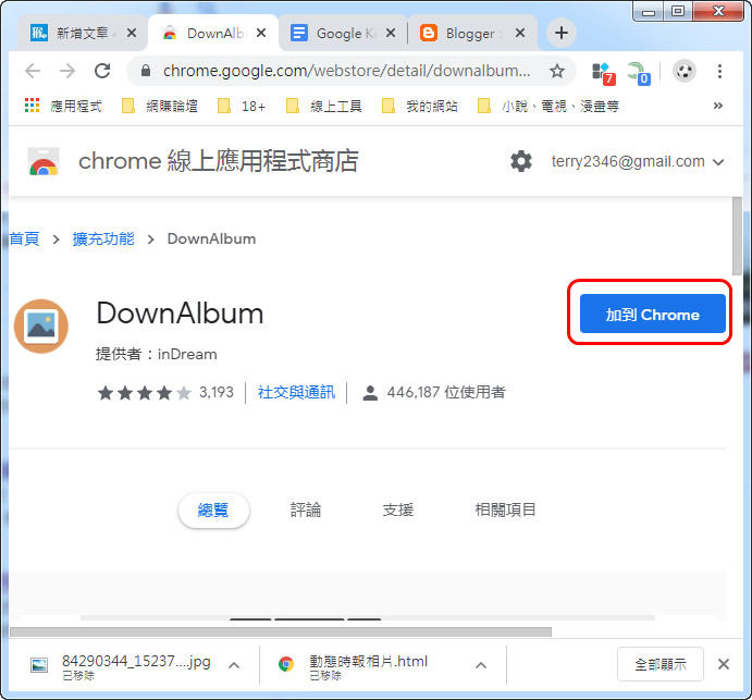 這次要介紹的是利用一個 chrome的外掛,DownAlbum,讓我們可以一次下載FACEBOOK相簿裡的照片,不用一張一張下載照片。