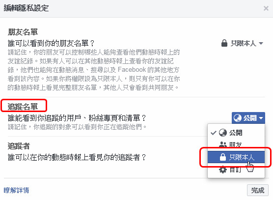 把”追蹤名單“這一個的權限設定成”只限本人”