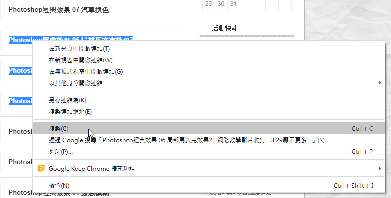 上一篇我們利用了 chrome的外掛來破解網頁的鎖右鍵。但如果我們不想要裝這些外掛,也沒有帶工具在手邊該怎麼辦?