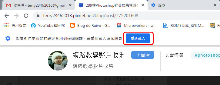 接著我們再回到網頁中,會看到更新過設定的訊息,接著我們要按重新載入。