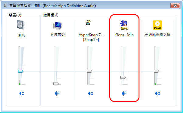 比如說,我想用雙螢幕一邊看電影,一邊玩模擬器的遊戲。所以我會保持 Potplayer的音量不變,但是把 Gens的音量大小往下調整。這樣一來我就可以一邊看影片,又一邊玩遊戲。把模擬器的聲音調整到我聽的到,但是又不會影響到我看影片。