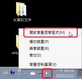 我們在這個圖示上,按滑鼠右鍵,點擊開啟音量混音程式。