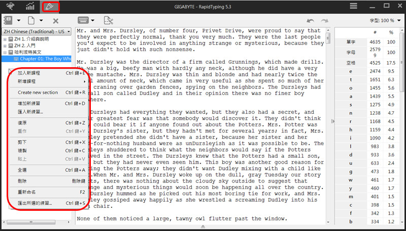真要說 RapidTyping的話,就只有一個,那就是不能做中文打字的練習。這是比較可惜的部份。