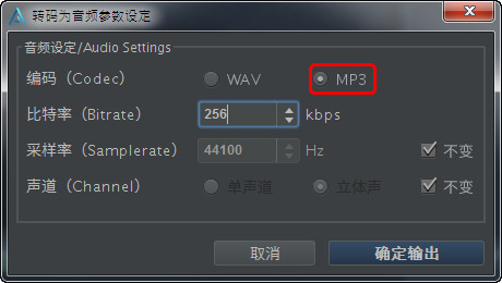 選擇[MP3],其它的保持預設就可以,最後按下[確定輸出]