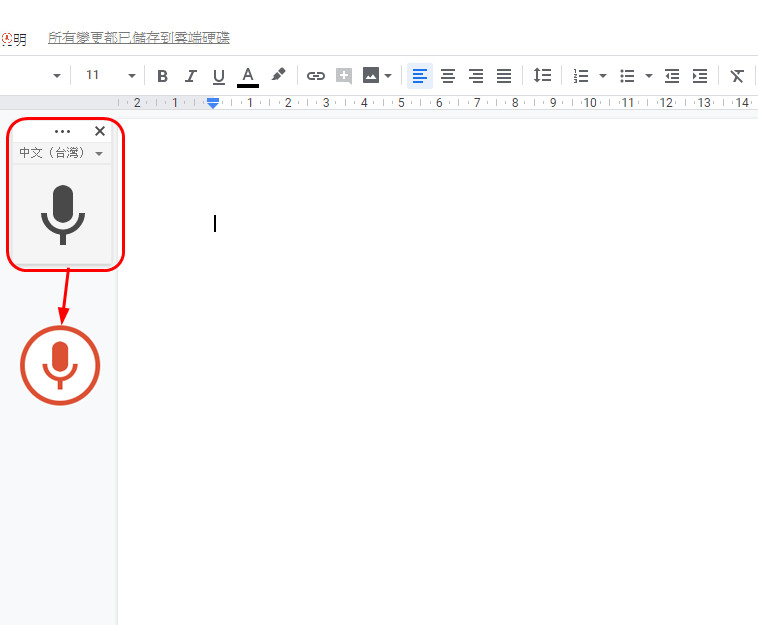 接著,我們就會看到文件左方跑出一個麥克風的圖示。在沒有使用的時候,它是灰黑色的。