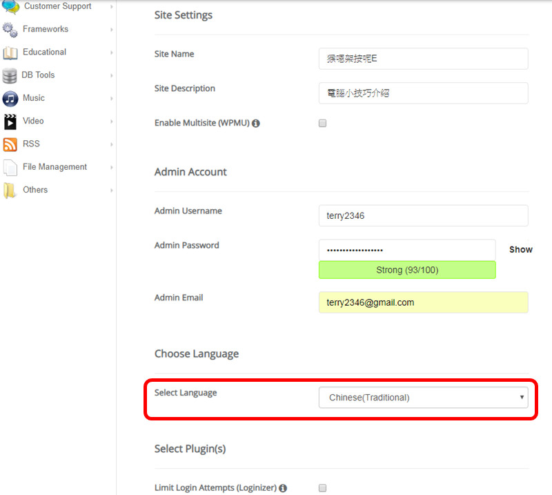 如果是第一次安裝Wordpress的朋友,可以將Wordpress Starter這選項打勾,這樣子的話,在進入Wordpress後台的時候,會有簡單的介紹和教學。