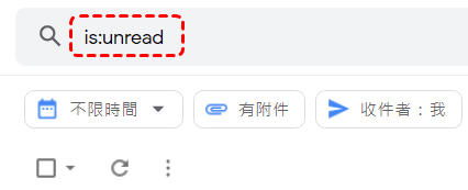 同理,在搜尋欄中輸入 is:unread後,就會找出所有未讀的郵件。