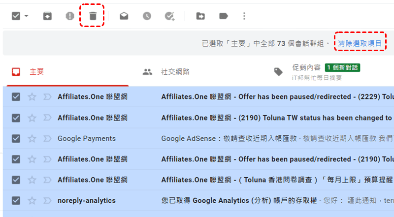 但有一些分身的帳號,用來註冊一些網路賺錢的網站,這些帳號,就不會每天開,偶爾打開一下,就會看到收到一大堆的信件。這個時候,這個方法就很好用了。
