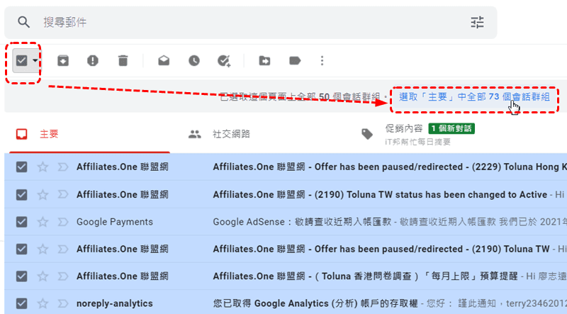 怎麼一次刪除 gmail中未讀的郵件,超過 100個以上的未讀郵件也可以