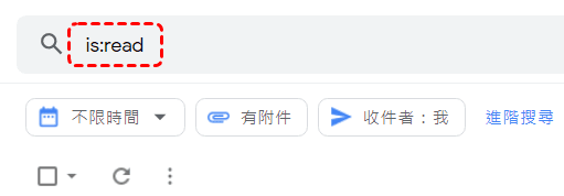 在搜尋欄中輸入 is:read,就會找出所有已讀的郵件。