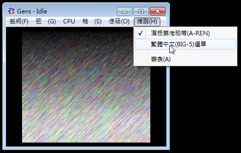 同時也由於我們更換了語系的關係,目前 Gens的選單都是一些看不懂的字。沒關係,我們直接點到最右邊的那一個選項,在這裡就可以切換成繁體中文的選單。