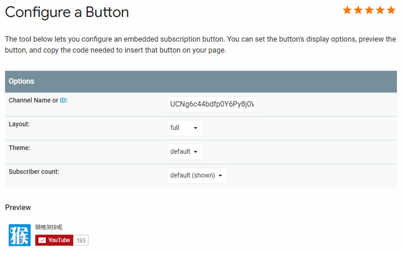 其它“Layout”、”Theme”、”Subscriber count”這些選項,只要我們選擇或是做了變更,都會即時的在Preview看的見,所以大家就挑一個喜歡的樣式來用吧。