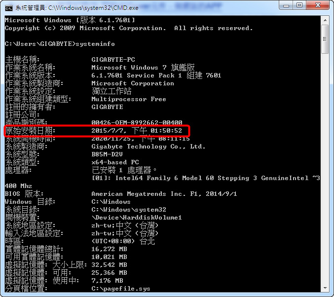 然後輸入 ”systeminfo“。