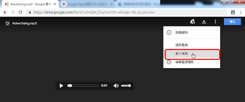 怎麼把放在google雲端硬碟上的mp3,嵌入到網站中播放