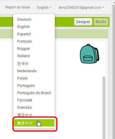 怎麼把 App Inventor的操作介面,改成繁體中文