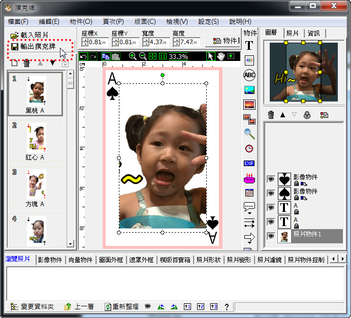 21張牌猜心魔術中,是利用撲克牌來做,那個時候,我是去找免費的撲克牌素材來使用,但其實我們可以利用 PHOTOCAP的功能,很快速的做出我們自已想要的撲克牌
