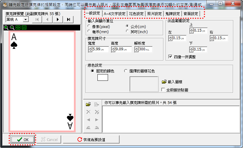 像是撲克牌大小,花色,字體,等等的,都可以在這裡預先設定