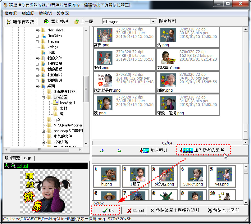 從右側上方選擇要使用的圖片之後,點擊加入所有的圖片