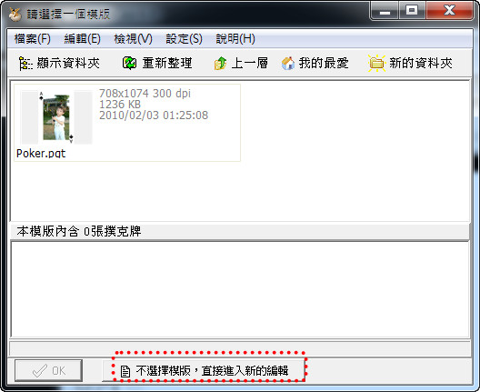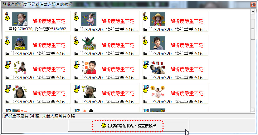 由於這次用的圖片,大小只有 370X320這麼大。而 PHOTOCAP做撲克牌的建議尺寸是 516X882。所以在預覽圖中,會出現解析度嚴重不足的字樣,這個可以不管它,直接按下我暸解這個狀況,請直接輸入就可以了。