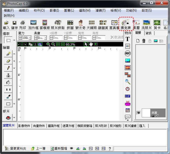 我們打開 PHOTOCAP,就可以在工具列上看到撲克牌的項目。